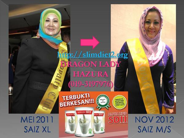 Selamat Tahun Baru 2013 .. Seperti biasa kalau dah masuk tahun baru ni ramai yang mula berazam baru.. Kak zura sendiri pun ada azam baru untuk tahun ini.. Kalau tahun 2012, azam kak zura nak turun berat badan dan nak dapat income RM100,000 sebulan.. Syukur ya ALLAH, impian kak zura telah tercapai bila dengan mengamalkan produk Alpha Lipid SD2 kak zura dapat pakai baju saiz M dan S… Berat kak zura sekarang dah tak turun tapi saiz semakin mengecil.. Pada Nov lepas, kak zura ada ke kedai untuk cari baju Royalty Dinner.. ambik je baju yang berkenan, try memang muat lah.. bila tanya sales girl saiz berapa, dia cakap saiz S!!! tak sangka sungguh.. kalau dulu jenuh nak try pakai M pun memang tak muat lah jawab dia… asyik-asyik saiz XL dan L je yang muat.. frust memang frust, tapi nak buat macam mana kalau dah GEMUK.. memang malu rasanya bila ramai yang tegur.. Pernah juga masa nak naik flight, org yang jaga masa nak boarding tuh tanya kak zura ni pregnant ke?? ADUIIII… menyirap darah rasa nak sergah je budak tuh.. huhuuuu…