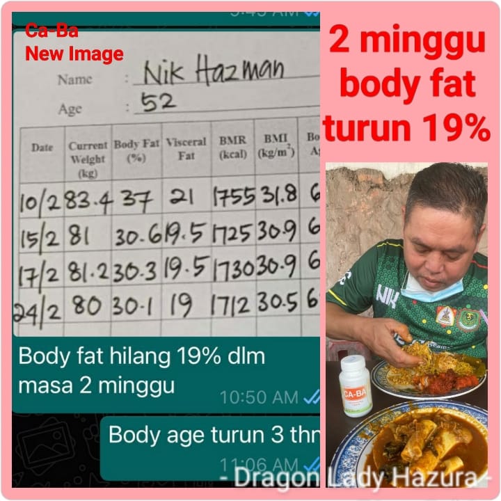 Ca-Ba adalah produk hangat terbaru dari New Image Malaysia, sampaikan stok terputus bulan Dec baru-baru ini. Kak Zura orang yang paling happy bila ramai yang amalkan Ca-Ba (Carb-Bal) dapat berjaya turunkan berat badan dengan cara guna yang betul. Yang mengalami masalah kencing manis pun dapat mengawal gula dan bacaan gula pun semakin menurun.